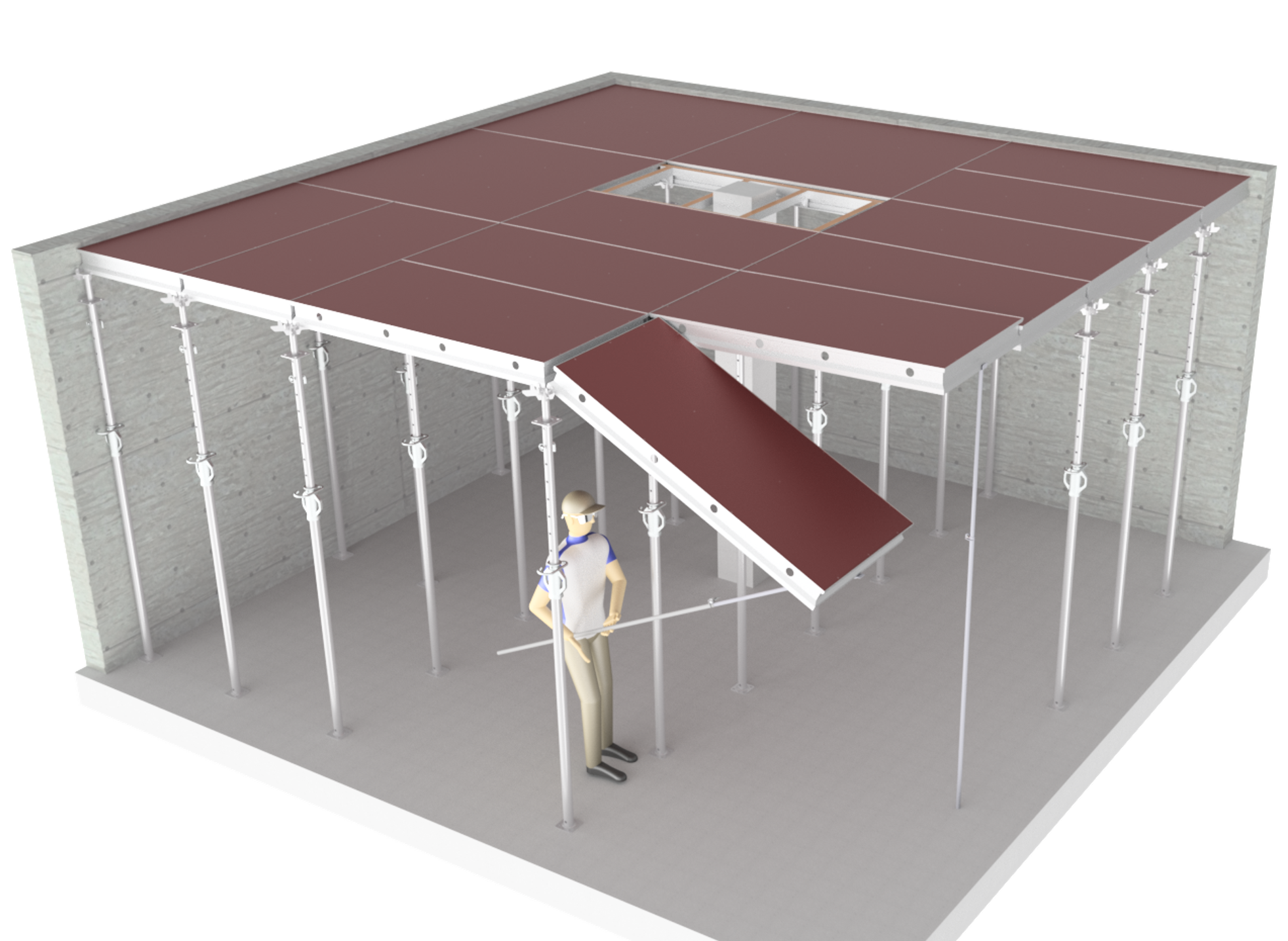 Le système Modudeck optimise le coffrage de dalles en permettant à vos équipes de travailler en toute sécurité directement depuis le sol. Alliant légèreté extrême et robustesse, il simplifie l'assemblage sans nécessiter d'outils de levage lourds. Compatible avec d'autres marques.